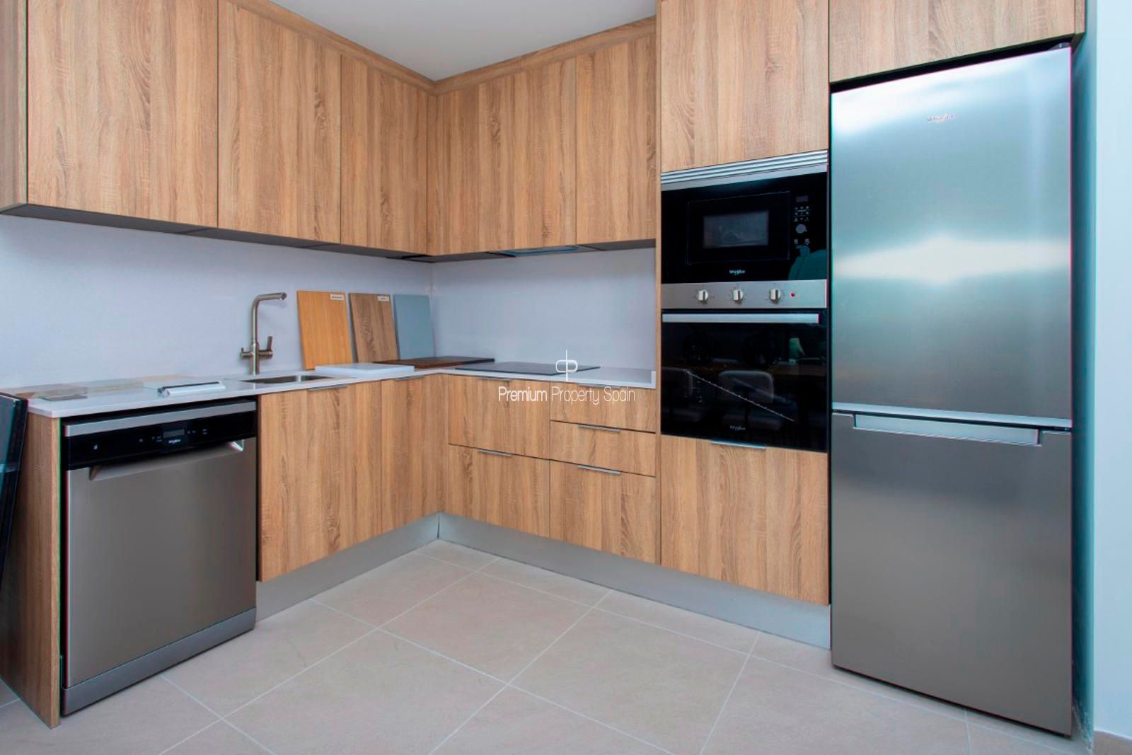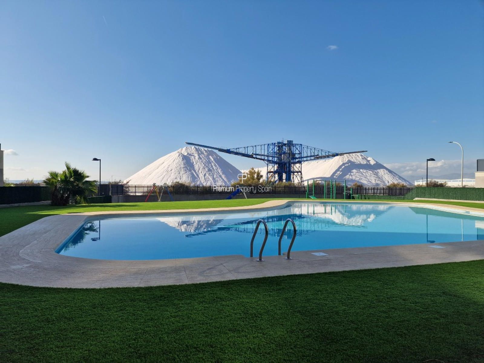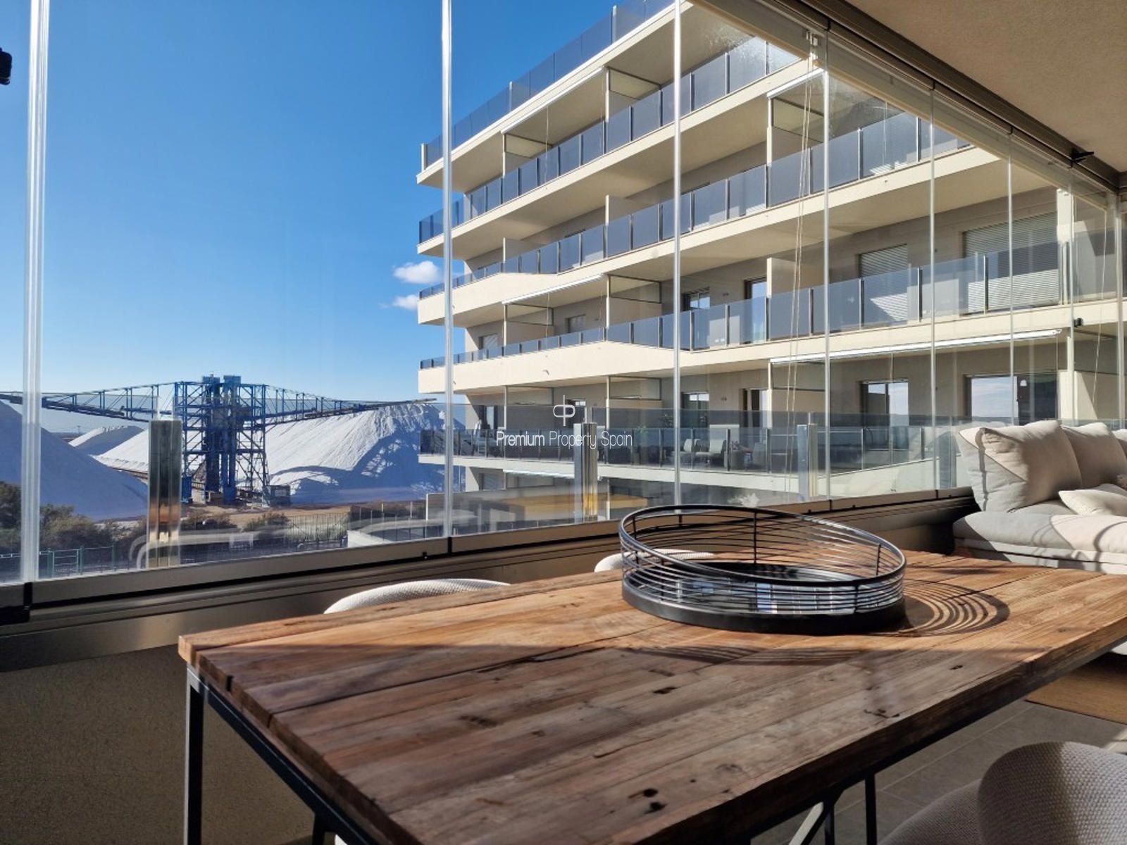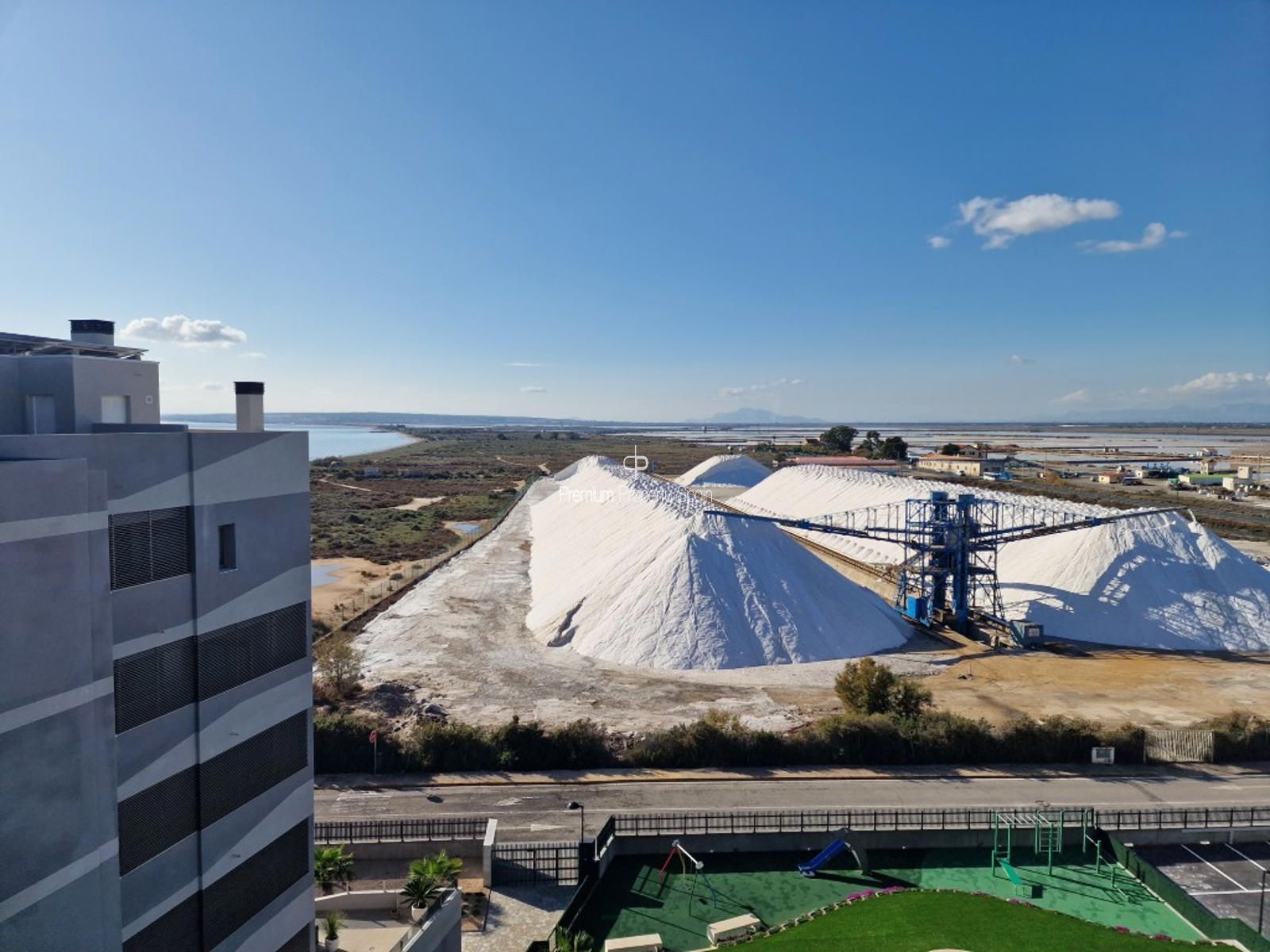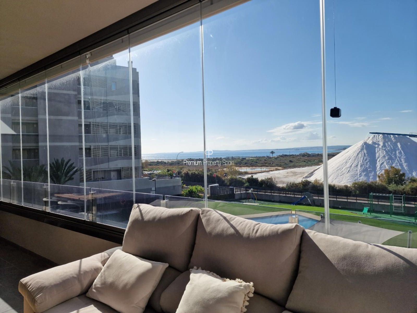 - Devant, un grand espace ouvert où sont distribués la cuisine ouverte, la salle à manger et le salon, le tout très bien éclairé et aéré par une enceinte complète de grandes portes coulissantes menant à une grande terrasse de plus de 17m2, avec vue sur la mer et le paysage naturel depuis les salines de Santa Pola.