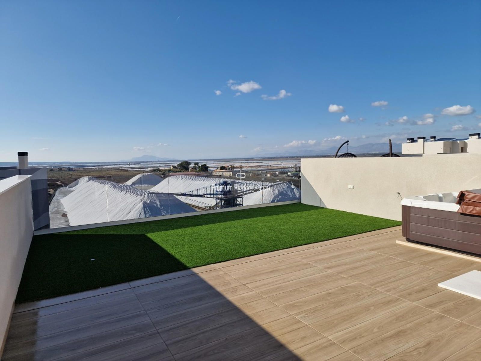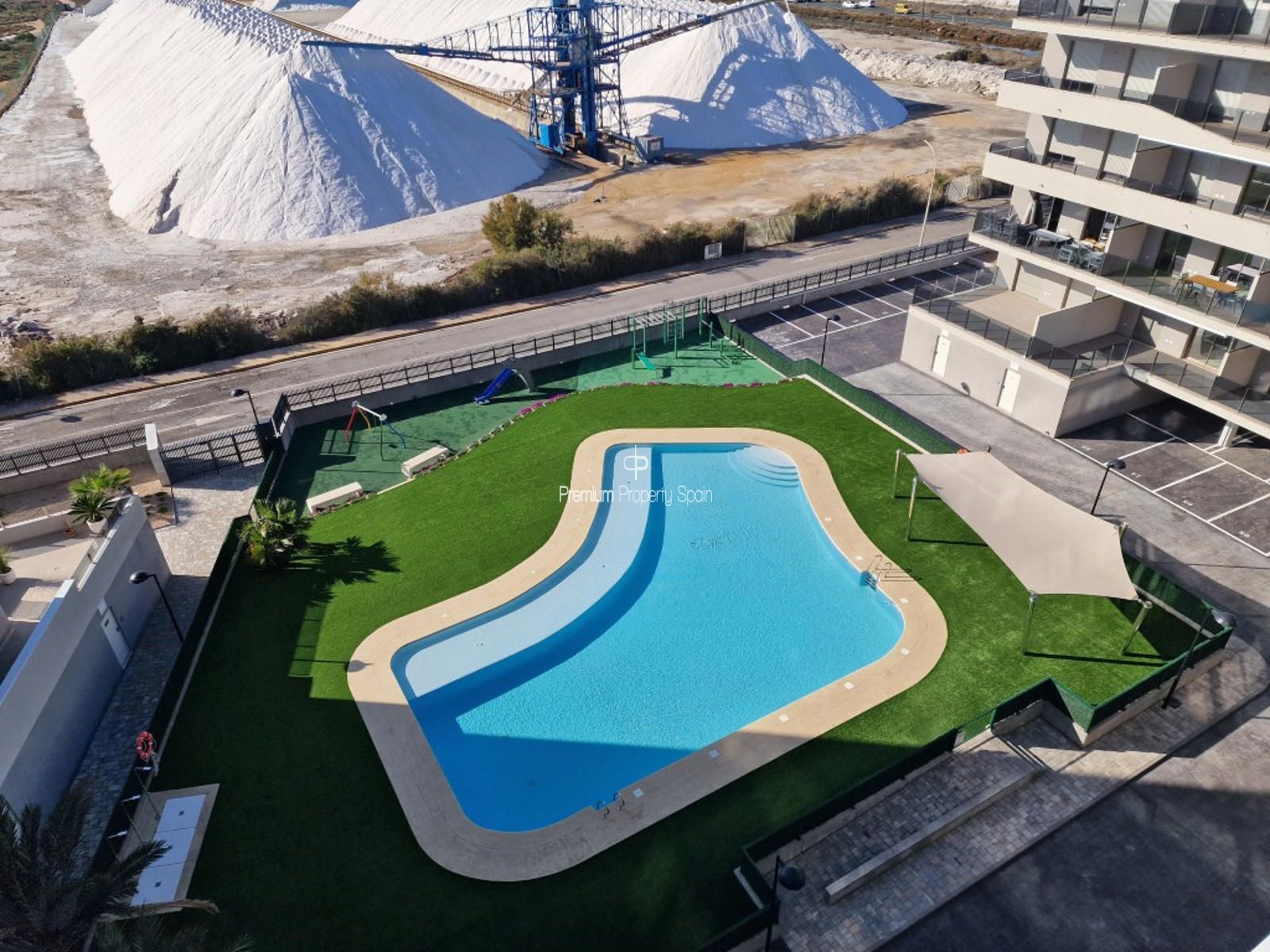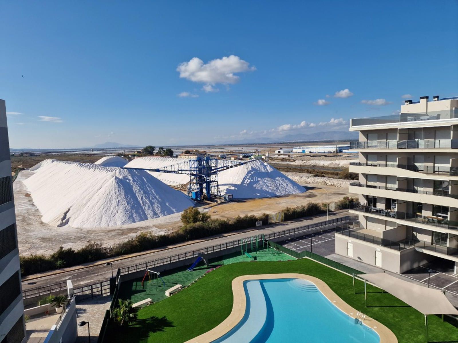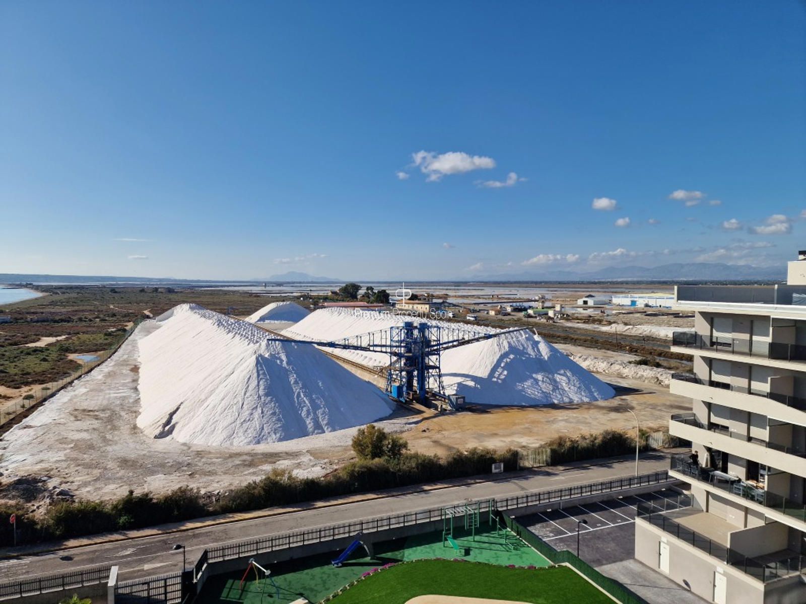 - Devant, un grand espace ouvert où sont distribués la cuisine ouverte, la salle à manger et le salon, le tout très bien éclairé et aéré par une enceinte complète de grandes portes coulissantes menant à une grande terrasse de plus de 17m2, avec vue sur la mer et le paysage naturel depuis les salines de Santa Pola.
