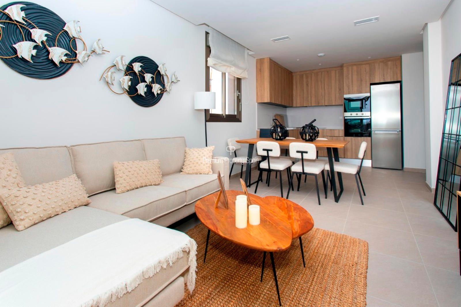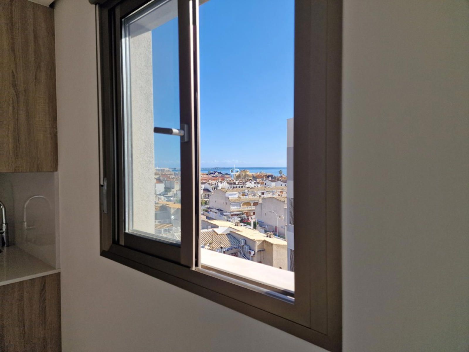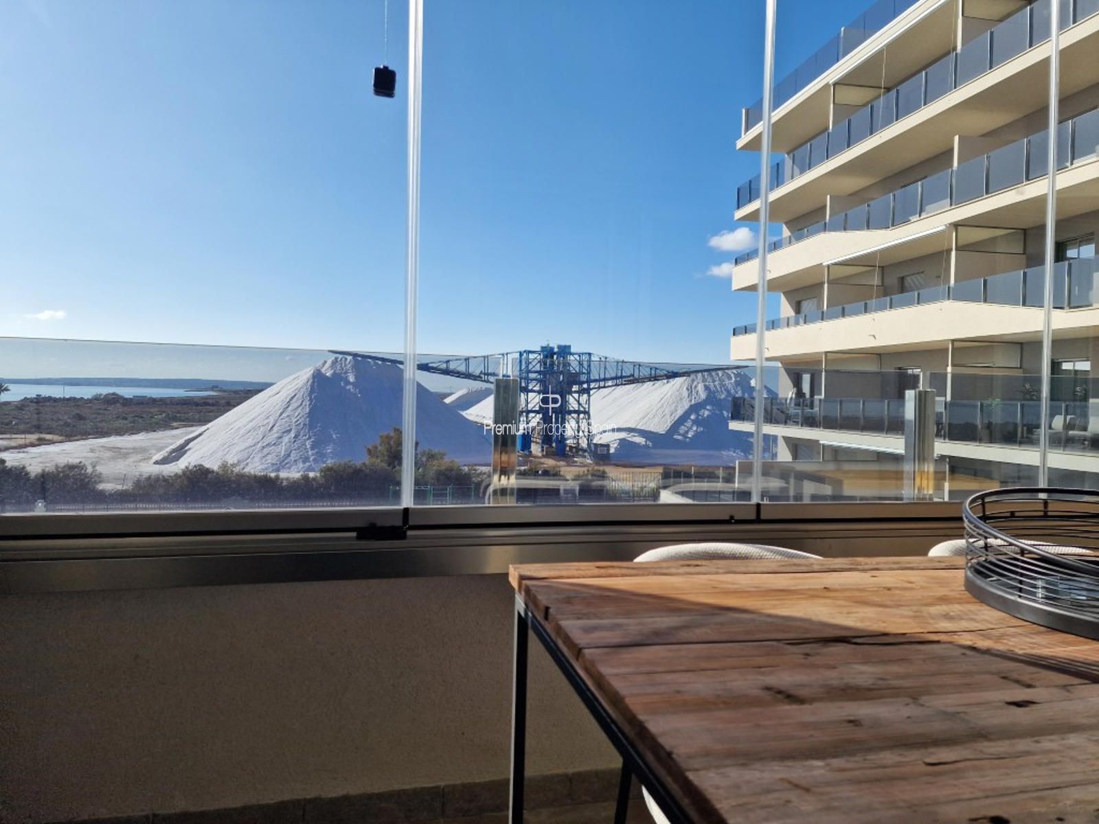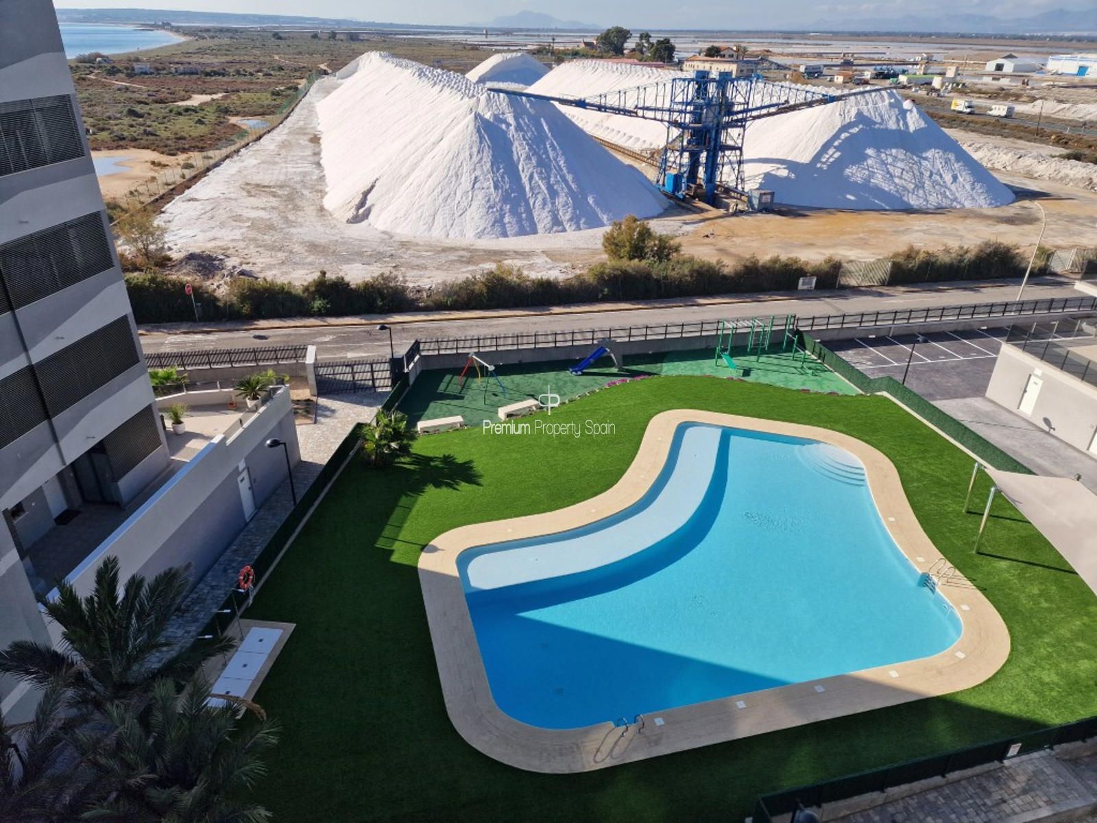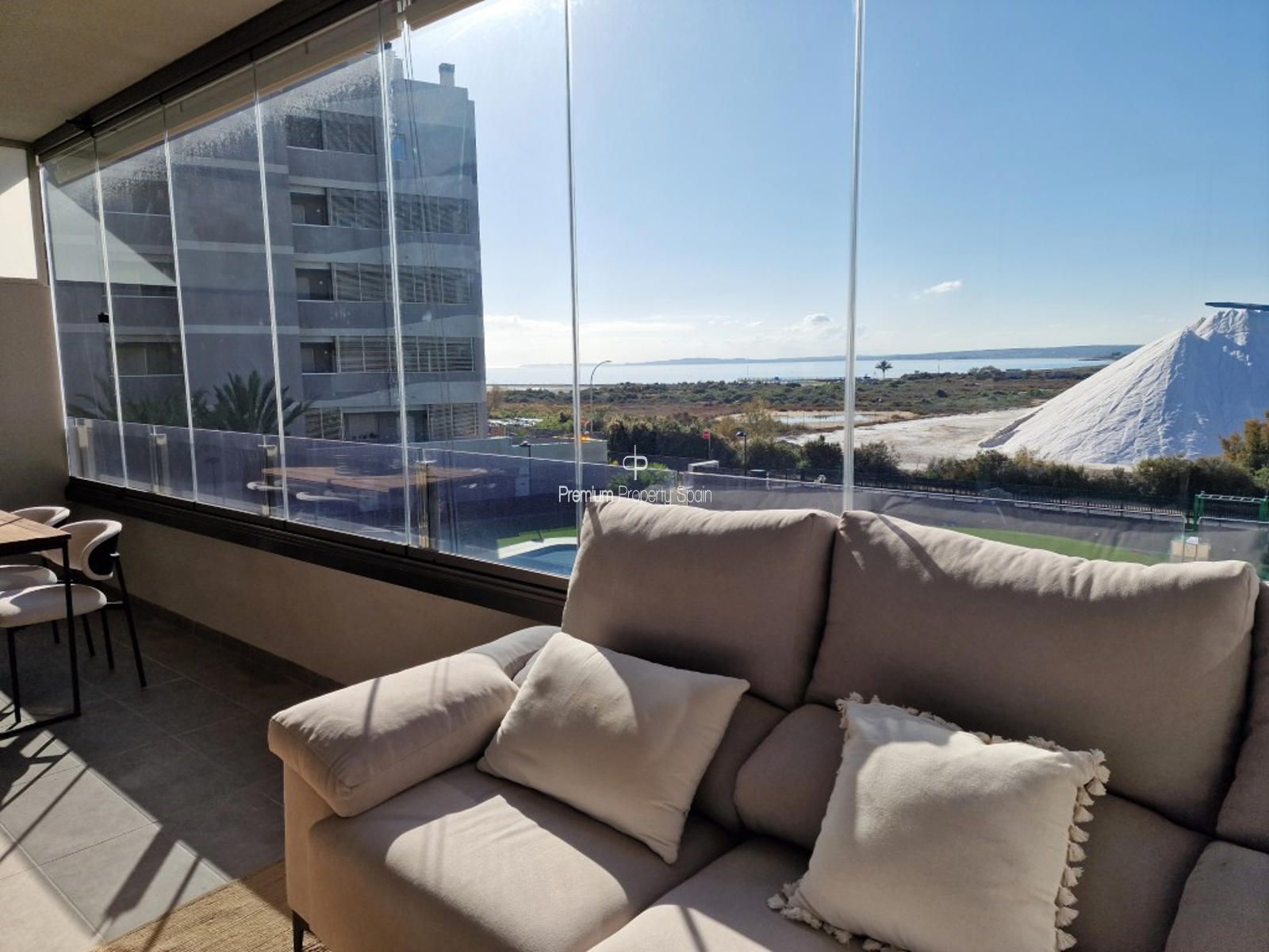 - Devant, un grand espace ouvert où sont distribués la cuisine ouverte, la salle à manger et le salon, le tout très bien éclairé et aéré par une enceinte complète de grandes portes coulissantes menant à une grande terrasse de plus de 17m2, avec vue sur la mer et le paysage naturel depuis les salines de Santa Pola.