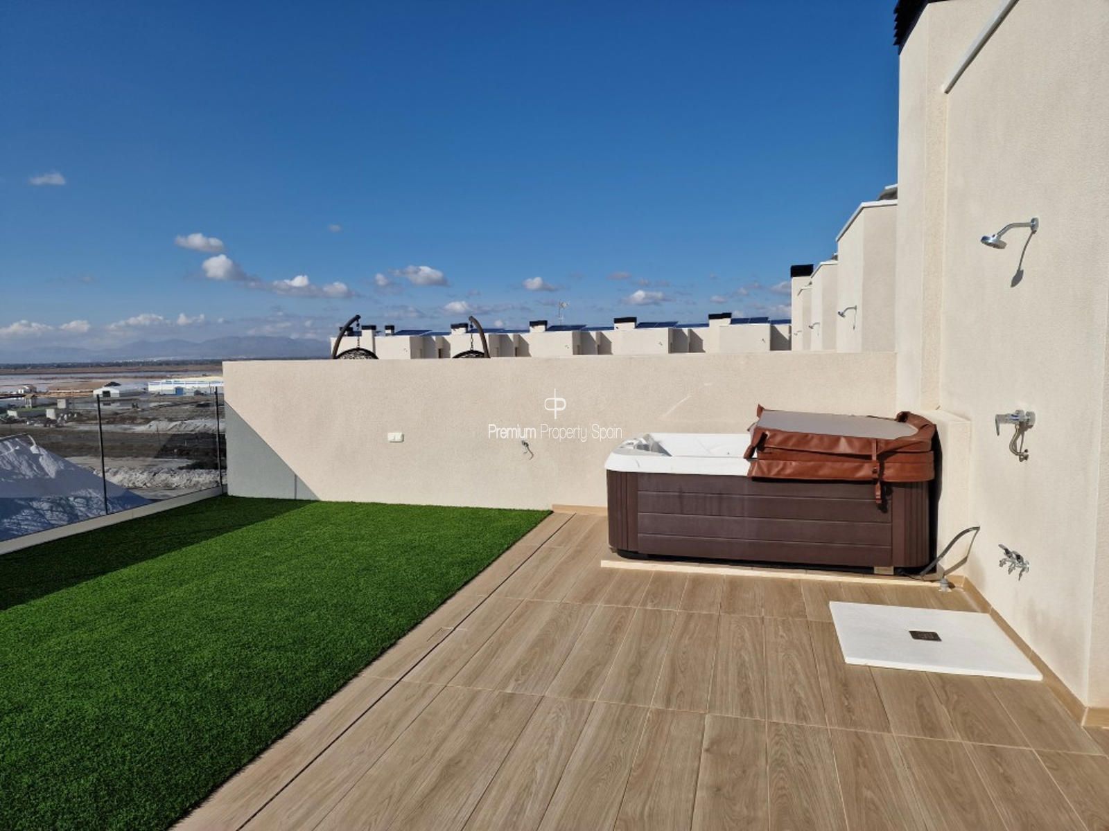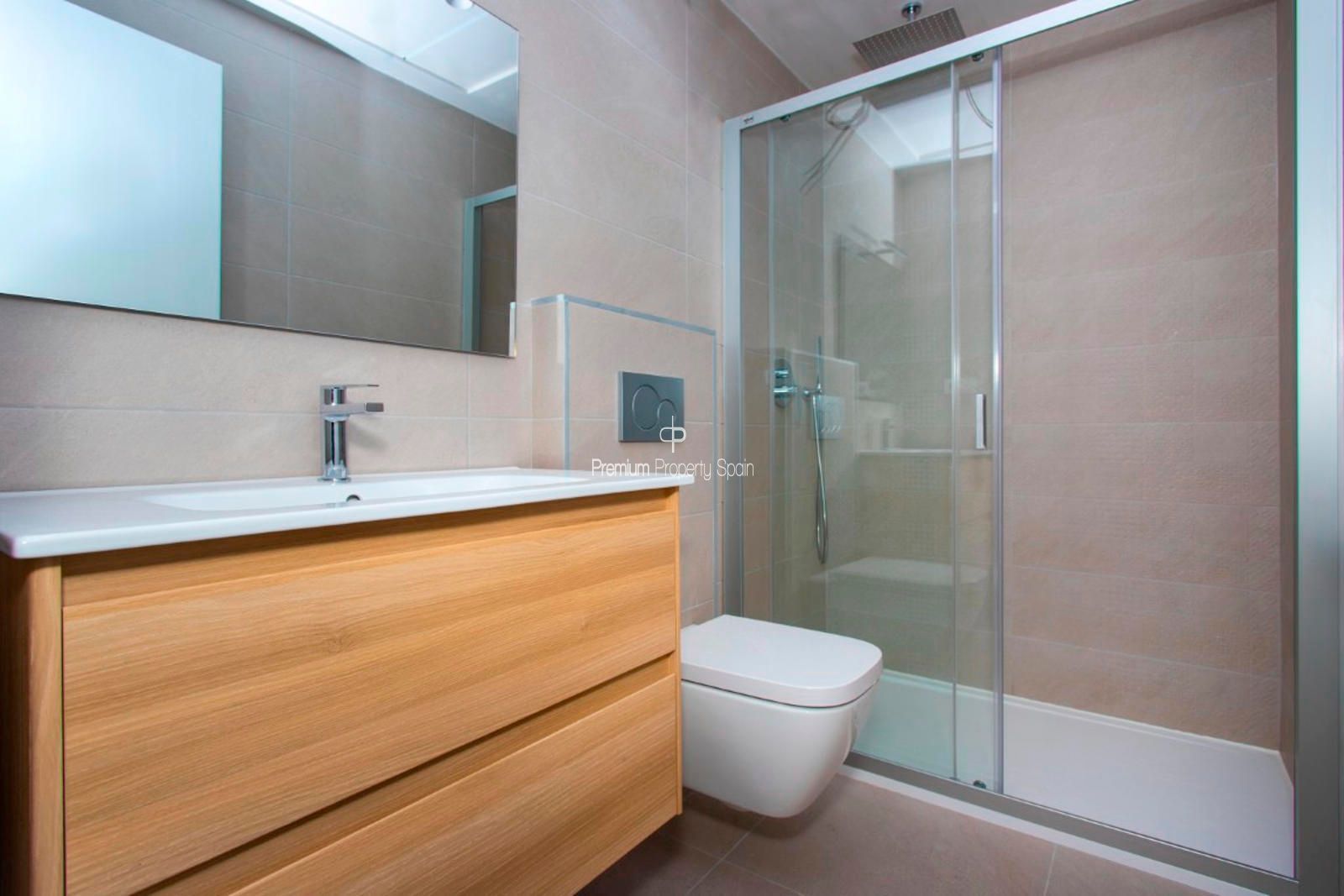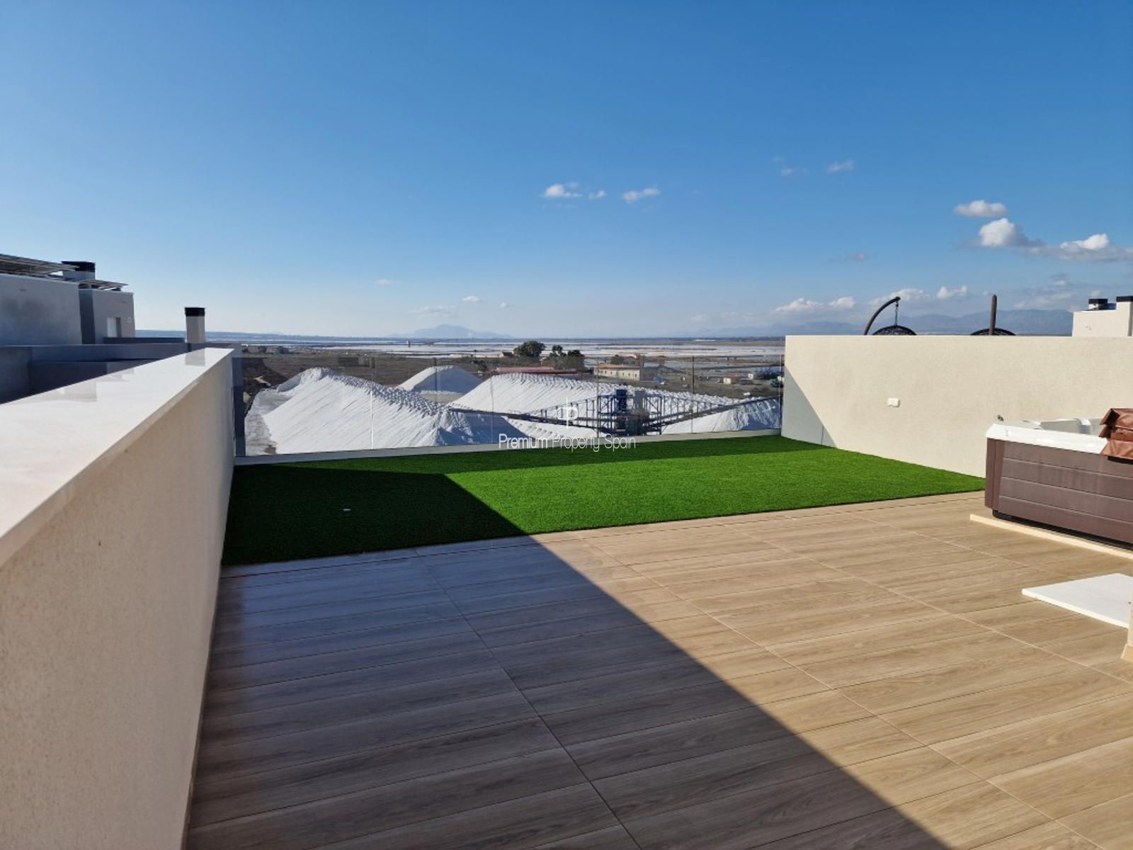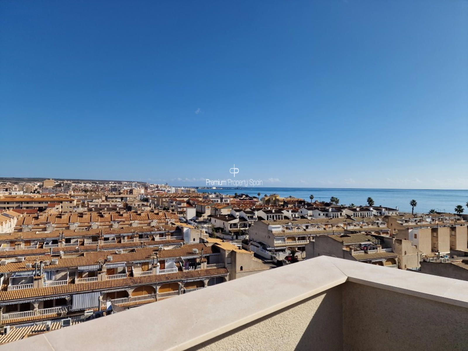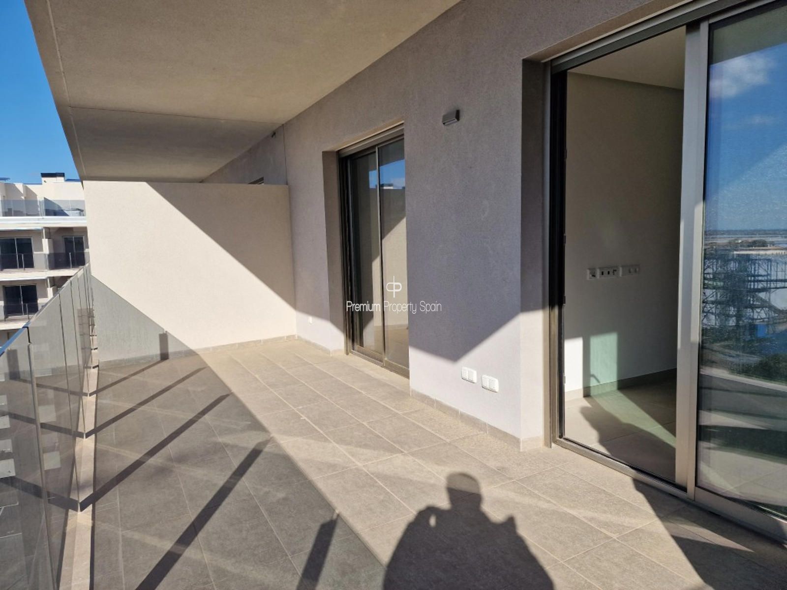 Penthouse lumineux de nouvelle construction, 3 chambres (une en suite) + 2 salles de bains, toutes extérieures, avec une terrasse de 17m2 et un solarium privé fini de 77m2. Situé à 150m de la plage, à Santa Pola - Costa Blanca - Alicante.